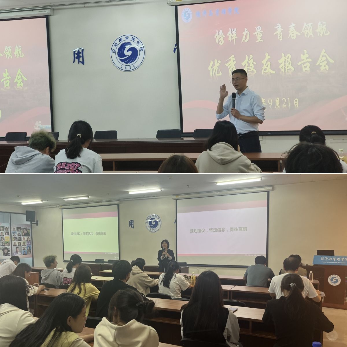 9月21日,在williamhill中国建校45周年之际,WilliamHill中文邀请天津大学讲师、团队博士生导师、天津市哲社科创新团队副主任、学院金融学专业2016届优秀毕业生马韶君以及中硕(天津)教育管理有限公司、天津卓锐纵才职业培训学校有限公司、天津仁衡教育科技有限公司创始人、学院人力专业2008届优秀毕业生刘彦颖,在第一教学楼701教室作“榜样力量,青春领航”主题优秀校友报告。学院党委副书记郭丽芳,人力资源与社会保障系主任刘解放,辅导员代表、学生代表共同参加了报告会。会议由刘解放主持。