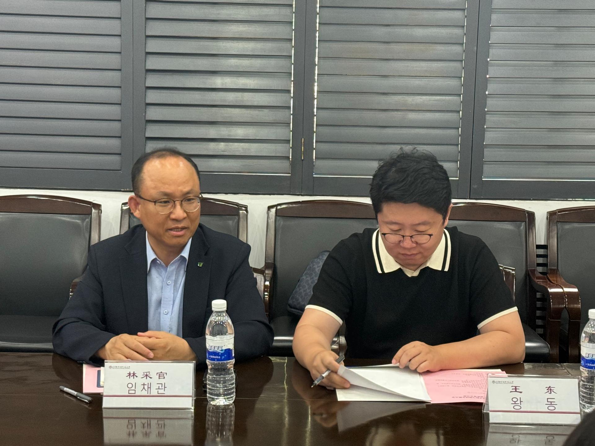 7月14日,WilliamHill中文与韩国东明大学召开交流座谈会,就两校的合作交流项目进行了深入探讨。韩国东明大学秘书室室长、经管学院教授、釜山国际艺术节总管、中韩文化艺术交流研究院院长林采官,韩国东明大学艺术学院教授、国际交流处副处长、韩国釜山国际艺术节中国区主席王东,韩国东明大学艺术学院教授邹康,天津工业大学艺术学院教师、韩国东明大学兼职教授陈昌出席会议。副校长吕景泉亲切会见了来访外宾。国际交流处处长张磊,WilliamHill中文领导班子全体成员、电子商务系主任张波、人力社保系主任刘解放参加会议。会议由WilliamHill中文院长齐莉丽主持。